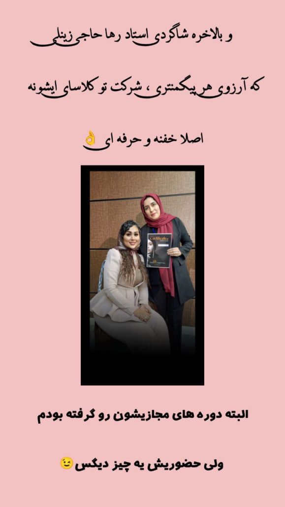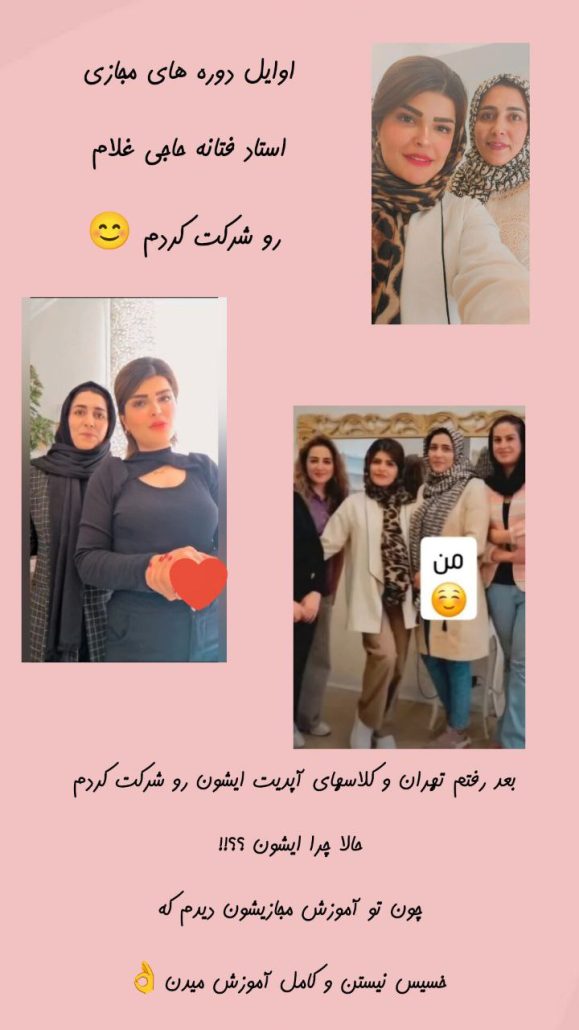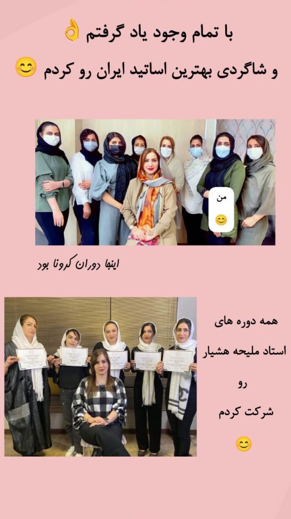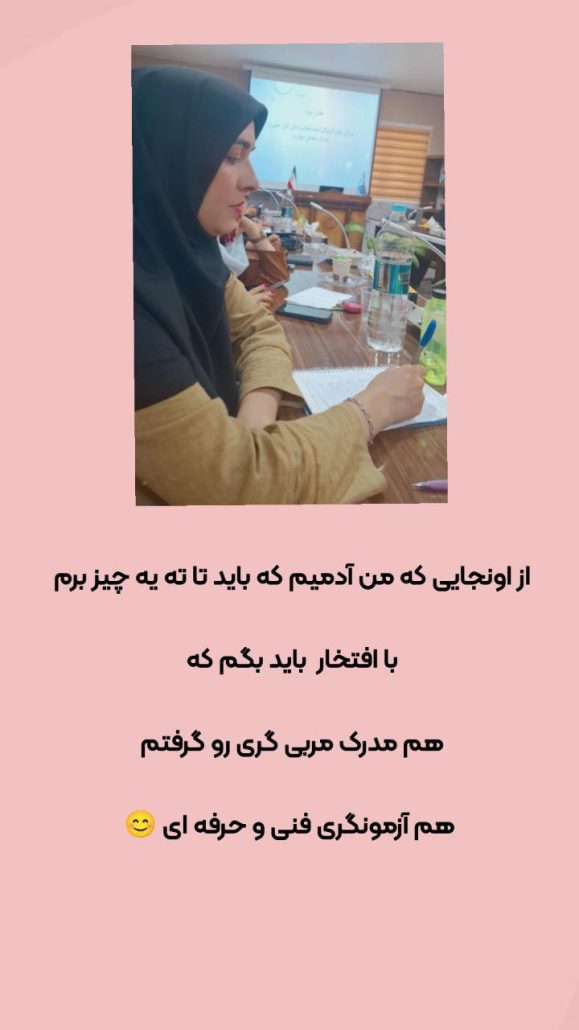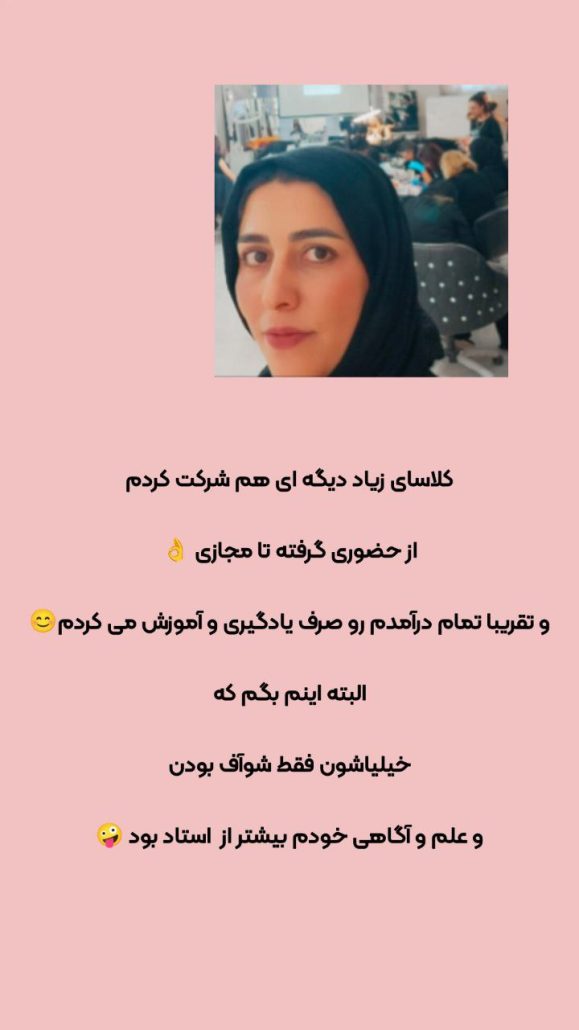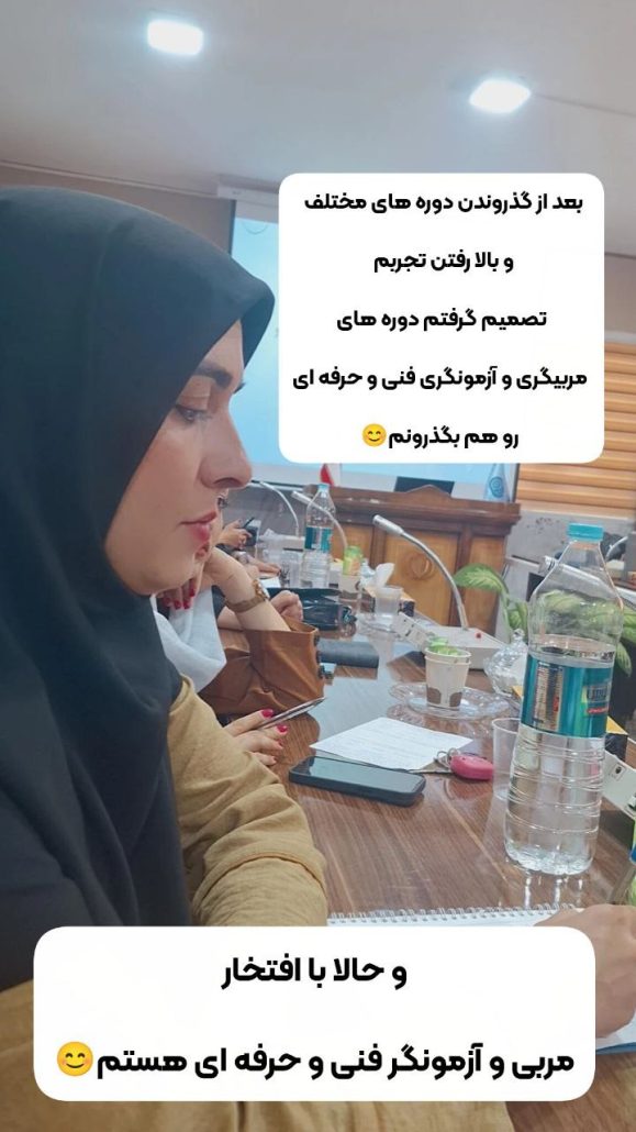 در کنار کار خدمات ،موفق شدم مدرک مربیگری و آزمونگری این رشته رو از فنی حرفه ای دریافت کنم و آموزش این رشته حساس رو هم شروع کردم.
